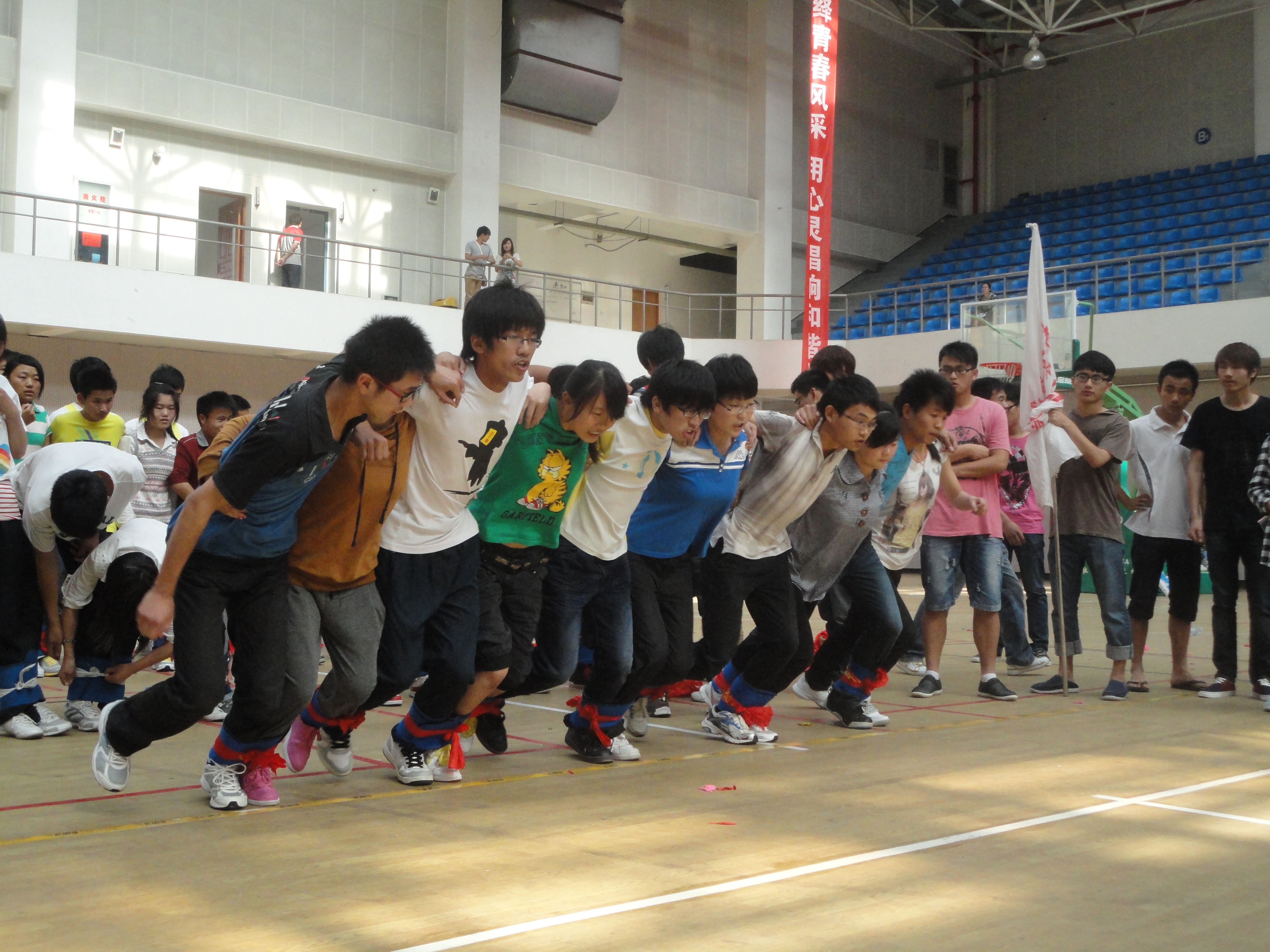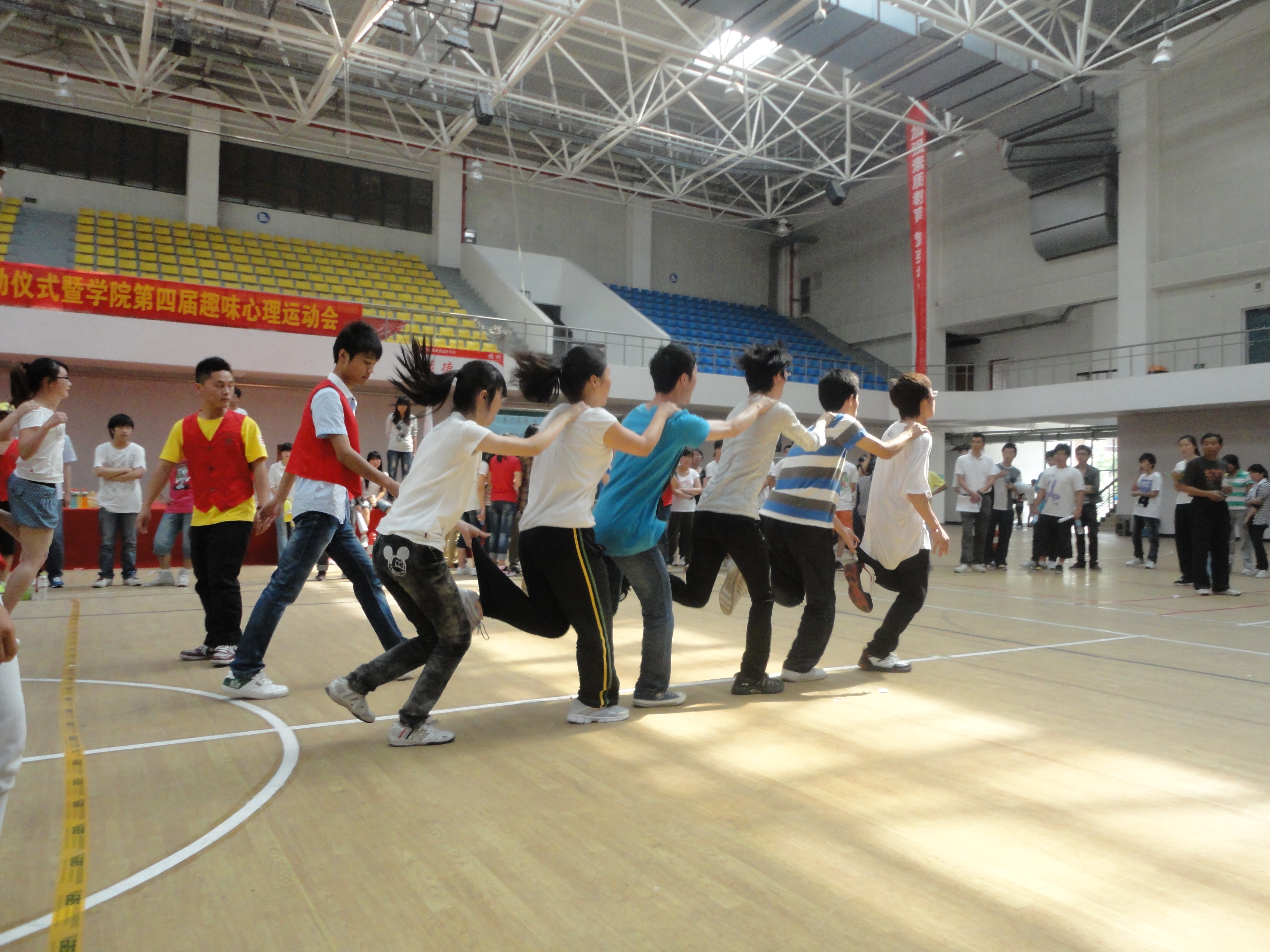 下午,学院第四届趣味心理运动会在行健馆举行。此次运动会共设管道传球、无敌风火轮、火车快开、背靠背心连心、阳关伙伴五个比赛项目,我系参赛队员刻苦训练,积极参赛,群策群力,团结合作,获得团体三等奖。