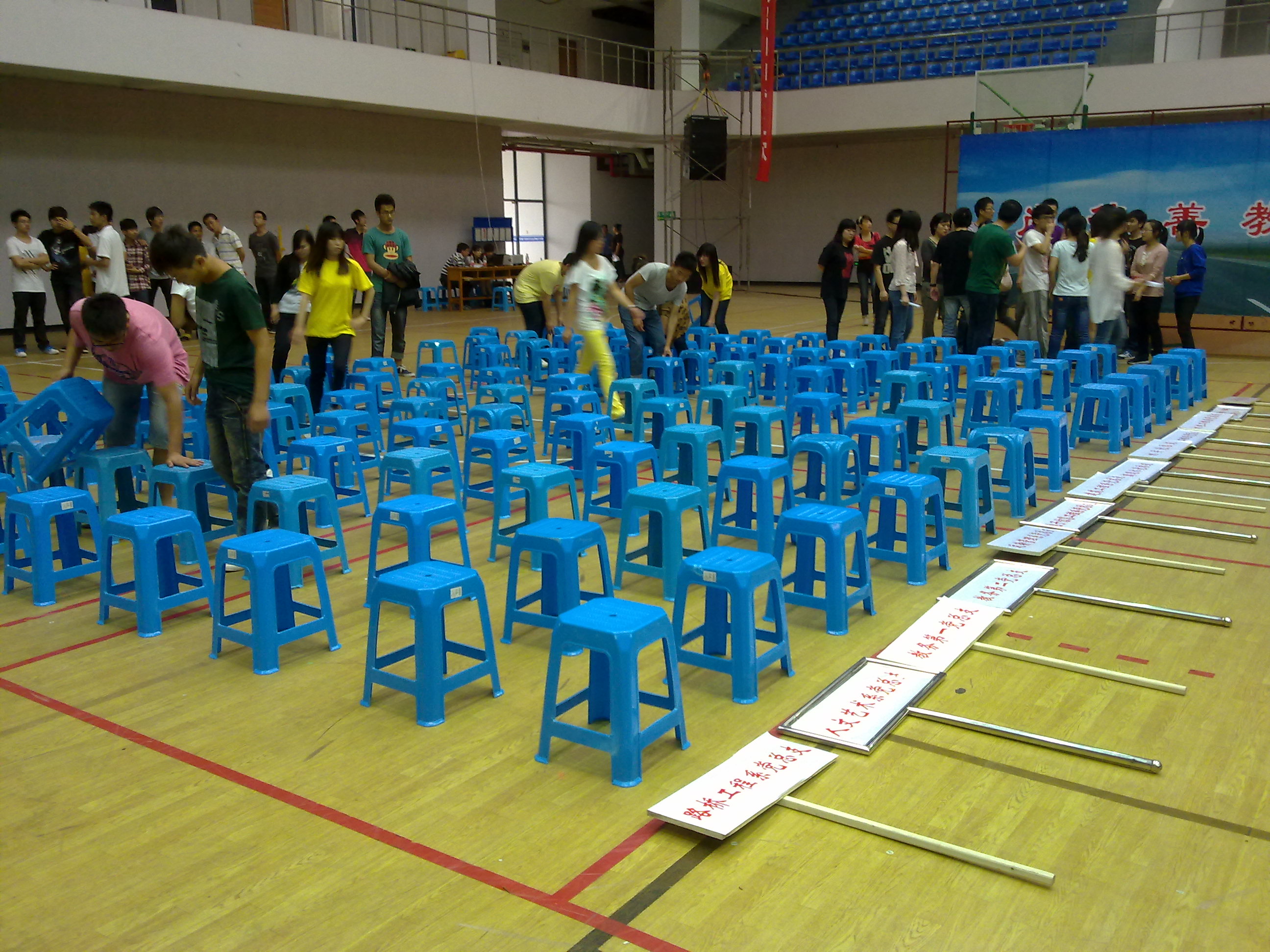 工作人员布置选手候场区
