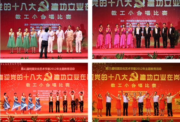 此次比赛由院工会、团委、电子信息工程系共同组织举办。学院各基层党组织坚持把此项活动作为创先争优与和谐校园建设的载体,紧紧围绕活动主题,广泛发动,认真组织排练。经过激烈角逐,路桥工程系党总支、国际教育学院(外语部)直属党支部荣获一等奖,电子信息工程系党总支、机关党总支、教务第二党总支、建筑工程系党总支获二等奖,运输管理系党总支、机电工程系党总支、后勤产业党总支、人文艺术系党总支、教务第一党总支、汽车工程系党总支、离退休党总支获三等奖。院领导分别为获奖代表队颁奖。