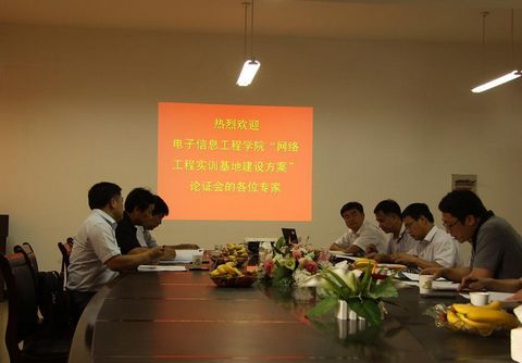 为切实做好 “网络工程实训基地建设方案”论证工作,6月27日下午,电子信息工程学院召开了专家论证会。会议成立了以南京大学计算机科学与技术系副主任杨献春教授为组长、南京工业职业技术学院计算机与软件学院李甲林院长、江苏海事职业技术学院信息工程系冯茂岩主任、南京交通职业技术学院杨益明副校长、教务处祁洪祥处长、教学督导室陈锁庆主任6位校内外专家共同组成的专家组。电子信息工程学院领导、实训中心及网络技术教研室部分教师参加了论证会议,会议由吴兆明院长主持。