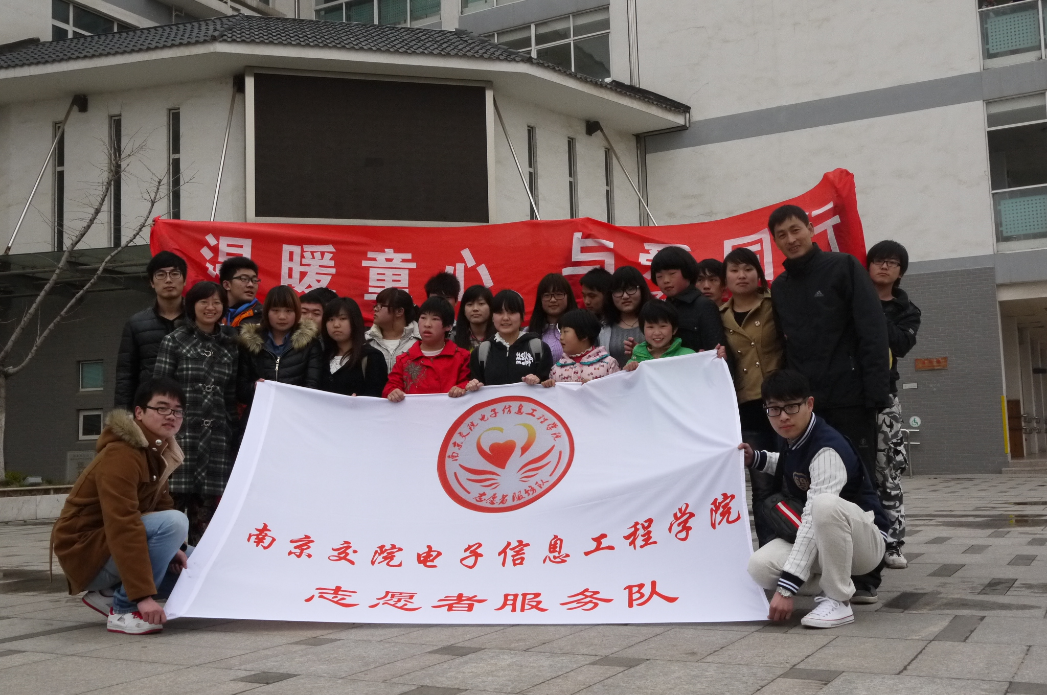 学生志愿者们与可敬老人们的合影