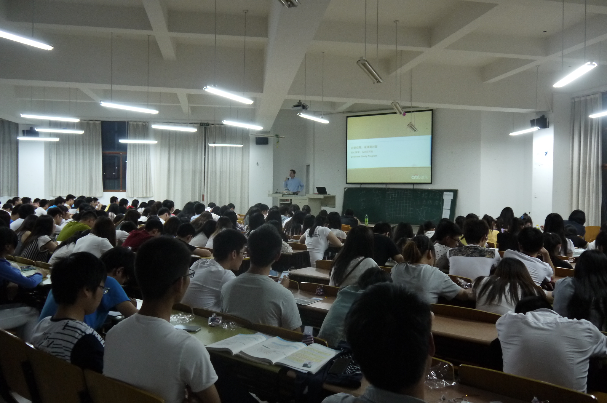 讲座首先由张莹老师向我们分享了自己海外留学的求学经历,从中客观地分析了国内与国外教学氛围与工作环境的差异,全面地解读了“出国留学”的利与弊。随后左希老师向我们分享了她多年的职场心得,并系统地介绍了“花旗银行海外留学一站式服务”体系。在随后的问答环节,到场学生提出了出国留学需要什么、大学生应当如何学习、毕业应选择何种职业等问题,老师们一一细心解答,最后讲座在一片掌声中落下帷幕。