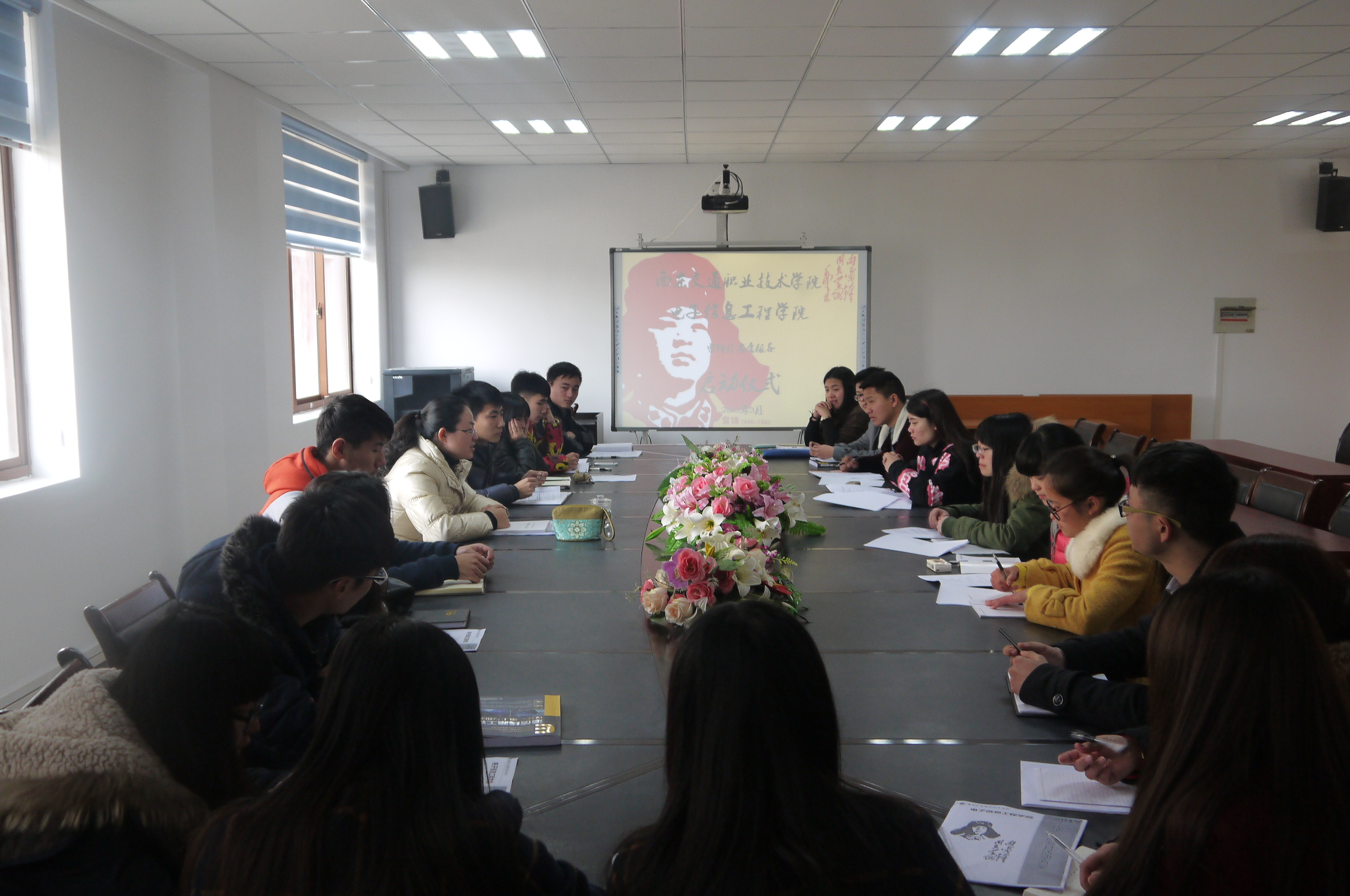 2015年3月12日下午13:00,电子信息工程学院“学雷锋志愿者服务月”启动仪式在宏博楼220室举行,参加此次启动仪式的有电子信息工程学院团总支老师、学生会全体干部和各班班长、团支书。