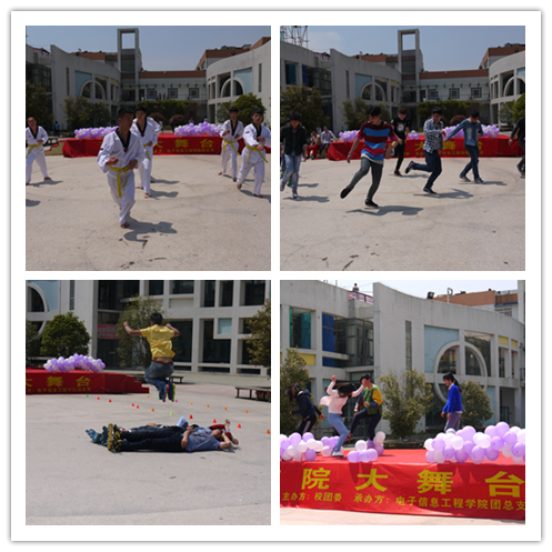 2015年4月22日中午12时30分,我院2015年交院大舞台活动在思源堂广场如期举行。本次活动内容丰富,舞台上陆续为大家带来了街舞、跆拳道、歌曲演唱、轮滑表演等精彩节目。而在游戏环节中,大家的踊跃表现更是将活动热潮推向高处。