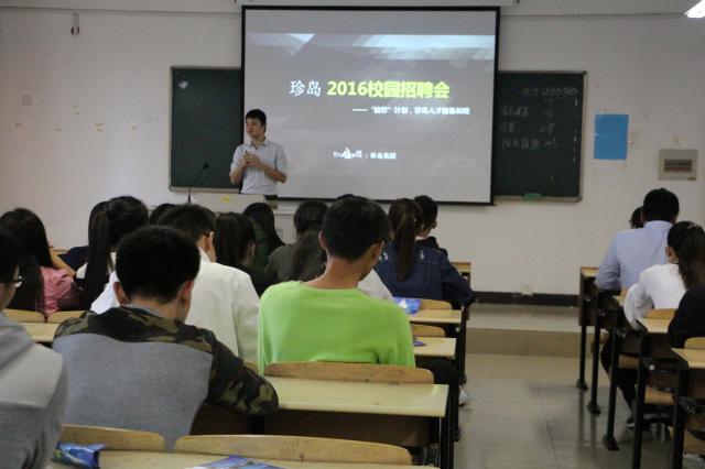 首先进行招聘宣讲的是南京建策科技股份有限公司,主要从公司状况、员工福利、人才理念、招聘方向及要求等方面进行讲说;珍岛公司——“骏珍”计划,珍岛人才储备战略的宣讲,也主要从珍岛公司概况、公司规模、员工福利及招聘岗位要求进行阐述;阳光财产保险股份有限公司主要从公司核心理念、战略发展状况、职业行为等方面进行介绍。