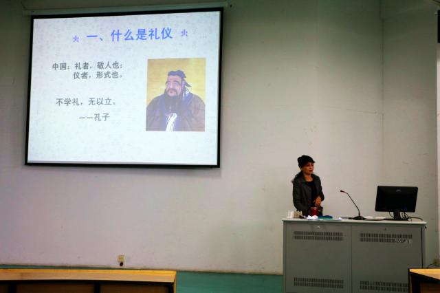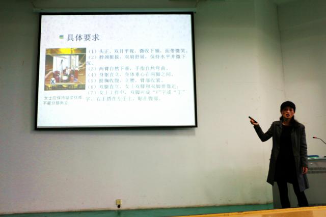 2017年11月6日下午3:50在宏博楼201由李莉老师主持召开大学生职场礼仪知识讲座。