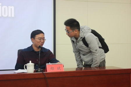 郑斌学长以“追梦岁月 砥砺前行”为主题,从回望校园·梦的起点、胸怀梦想·困境中砥砺前行、技术为本·创新中掌握核心三个方面回忆了大学时如何从一个懵懂少年蜕变成校园的学生骨干;回顾了毕业后、创业之初物质上的艰辛与精神上的迷茫;讲述了坚守自己的专业知识,不断创新,带领公司在创新中求发展的信心与执着。与会同学被学长的报告深深打动,会场掌声不断。会后在提问环节,郑斌对同学们提出的学习、专业知识、创业等问题一一进行了解答。