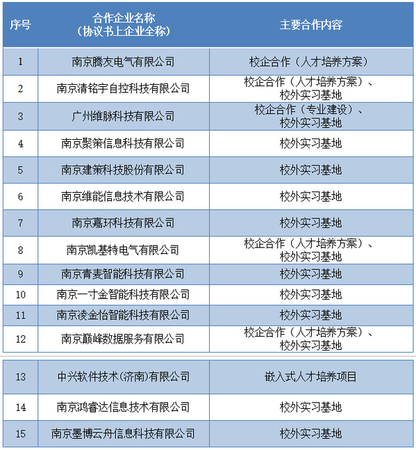 校企合作项目一览表