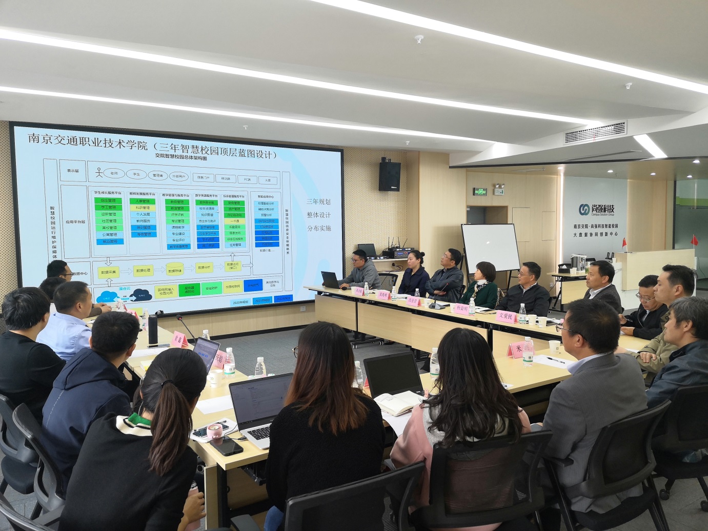 最后杨益明副院长就学校与上海尚强信息科技有限公司的合作提出了五个方面的意见:一是要以“软件技术精英班”推进为契机,校企共同全程全方位开展人才培养,不断提升软件技术专业的人才培养质量;二是要尽快组建校企的混编教学团队,确保“智慧校园精英班”的教学工作能够有效开展;三是校企双方优化软件技术专业的人才培养方案和课程体系;四是校企要共同组建研发团队,带领学生共同开展项目研发;五是要依托与上海尚强信息科技有限公司的合作大力推动教学管理工作信息化。