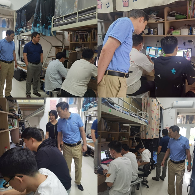 为保障新学期学生入校前两周的网课质量,了解学生在宿舍线上学习情况,10月8日上午,学校副校长应海宁、电子信息工程学院院长吴兆明及辅导员、班主任深入电信学院学生宿舍巡课。