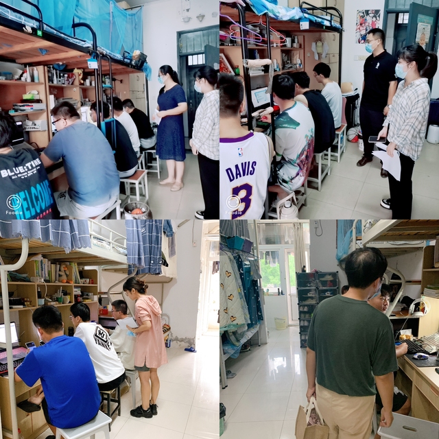 在J北二楼,应海宁副校长询问了学生线上教学平台的使用情况,察看了寝室设施、环境卫生、宿舍管理情况等,他叮嘱同学们合理安排时间,更加自觉自律地进行学习,同时要按照学校疫情防控要求,强化安全意识和自我保护意识,切实做好个人防护。辅导员、班主任分别在D南、D北、E南进行了巡课。
