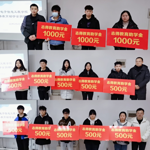 12月30日,电子信息工程学院“志得教育助学金”捐赠仪式在宏博楼222会议室举行,南京志得教育培训中心有限公司负责人、06级校友宋少强、志得教育交院校区负责人高波、陈苏永、电子信息工程学院党政负责人及13名受助学生参加了捐赠仪式。