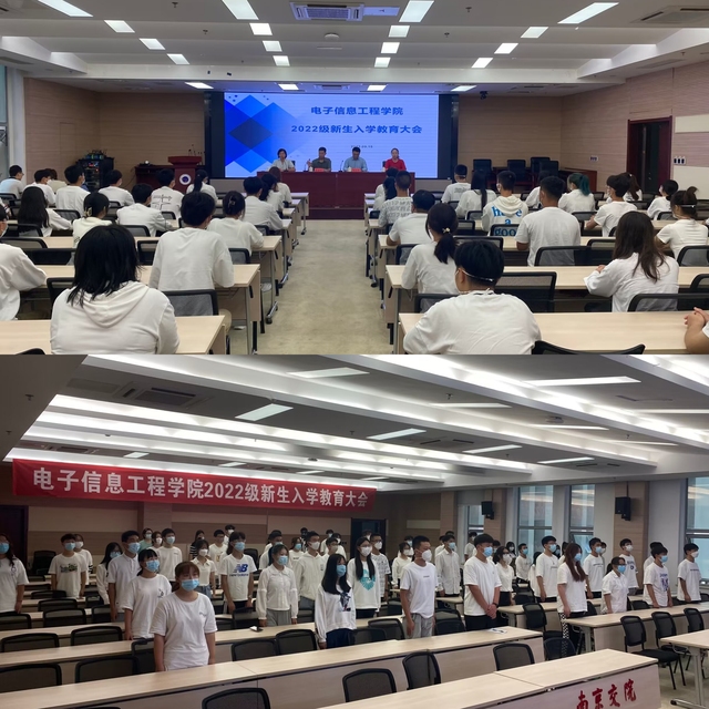 9月15日上午,电子信息工程学院2022级新生入学教育大会在图书馆B203举行。电子信息工程学院党政领导、教研室主任、2022级班主任、辅导员及全体新生参加了会议。因疫情防控需要,大会设1个主会场和10个分会场,采用线上线下结合的形式进行,会议由党总支副书记张丽君主持。