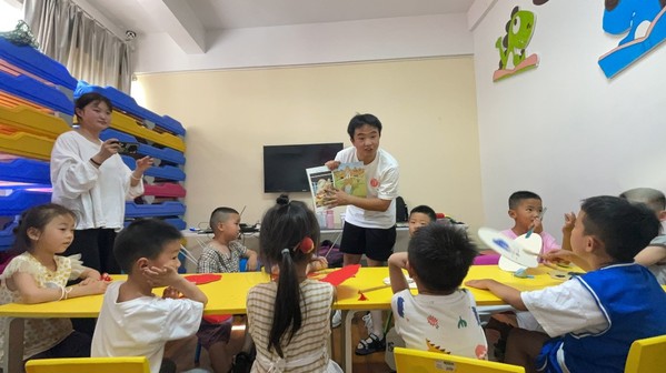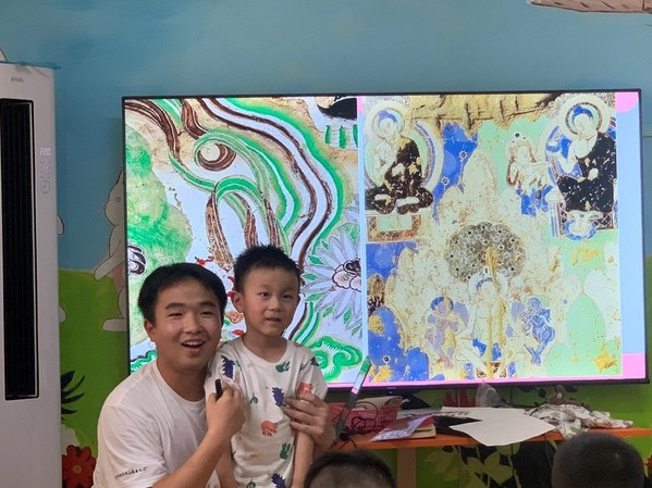 6月19日下午2点,宣讲团成员在徐州丰县“小海豚”美术教育学校对幼儿园的小朋友们进行宣讲。“汉文化”历史悠久、长远。宣讲团成员首先为小朋友们宣讲徐州的“传统文化”以及“汉文化”的历史,主要从“文化的形成”、“代表物件”、“汉美术”、“纹样”、“状物”、“壁画”等多个方面开展。