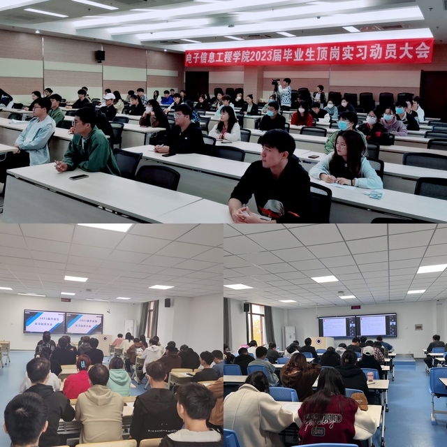 为强化实习管理,明确实习内容,确保实习质量,11月11日上午,电子信息工程学院2023届毕业生顶岗实习动员大会在图书馆B203召开,根据疫情防控要求,会议采用线上和线下相结合的方式进行,宏博楼设十个分会场。校保卫处副处长周家明、图书馆韦潇老师、电子信息工程学院相关老师、2020级六百余名学生参加了大会。会议由学院党总支副书记张丽君主持。