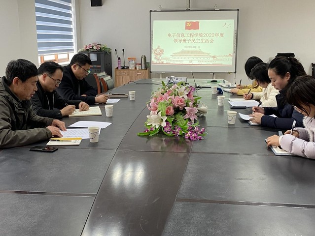 3月1日下午电子信息工程学院党总支在宏博楼222会议室召开2022年度领导班子民主生活会。全体院领导参加会议,校党委委员谢剑康副院长、校纪委委员运输管理学院王艳梅书记到会指导,党总支委员、党政办公室有关同志列席会议。党总支书记杨金刚主持会议。
