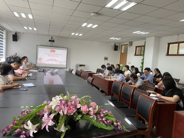 为深入学习贯彻习近平新时代中国特色社会主义思想,进一步将电子信息工程学院主题教育工作走深、走实,6月14日,电信学院在宏博楼222会议室召开党员理论学习会。会议由党总支书记杨金刚主持,电信学院全体党员参会。
