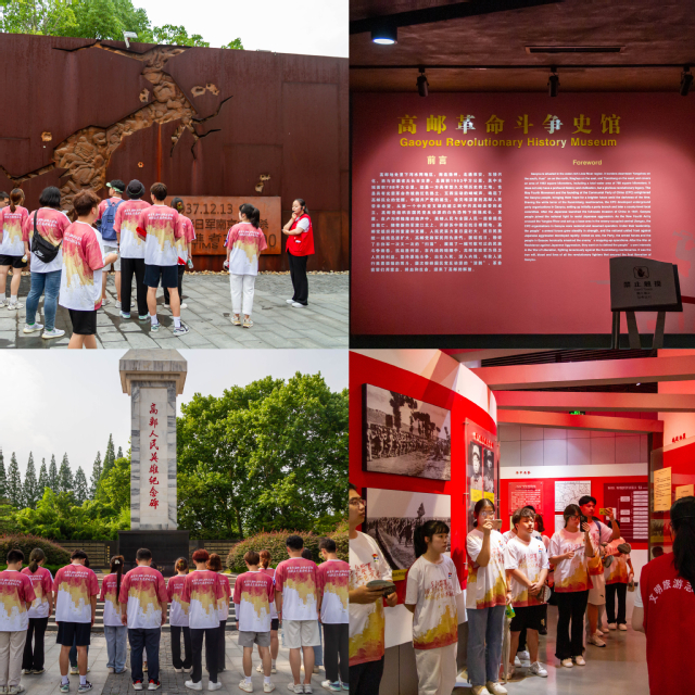 通过讲解员的带领,大家来到了重点刻画“高邮战役”、“新四军受降”场面的抗日甬道,通体采用了锈红色耐合钢材料以其沧桑的质感诠释了抗战的艰辛;随后团队成员来到高邮市抗日战争最后一役纪念馆,在纪念馆内团队成员详细了解了抗日战争最后一役的战役过程及受降仪式等内容,深切感受到革命先辈们英勇无畏的革命精神和坚定不移的理想信念;位于抗日战争最后一役纪念馆东南侧的是高邮革命斗争史馆和高邮烈士纪念馆,这里展示了在高邮牺牲的和高邮籍在外地牺牲的87名英烈感人事迹及革命文物,活动结束于英雄广场,团队成员对牺牲的革命烈士进行缅怀、默哀,表达了对革命先烈的敬仰之情。