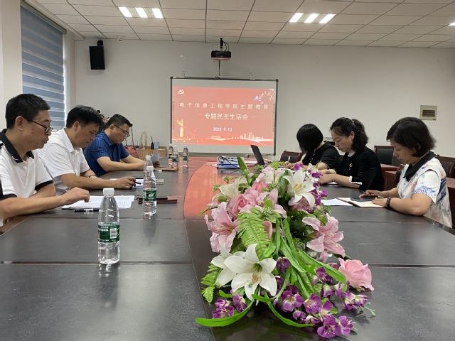 9月13日下午,电子信息工程学院党总支在宏博楼222会议室召开学习贯彻习近平新时代中国特色社会主义思想主题教育专题民主生活会。联系校领导、学校纪委书记张徐刚到会指导,学院领导班子成员、党总支委员参加会议,党总支书记杨金刚主持会议。