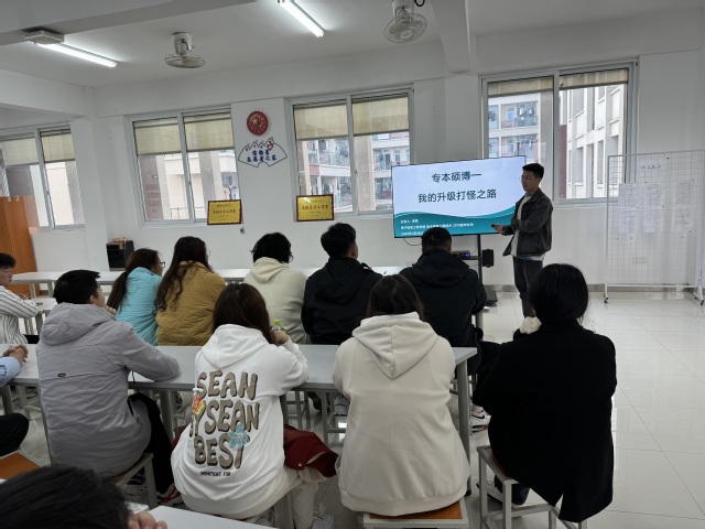 分享会上,李凯以《我的升级打怪之路》为主题,从个人经历、个人总结两个方面介绍了自己专、本、硕、博四个阶段的学习心得和体会。他鼓励学弟学妹们坚定信心,调整心态,科学合理做好升学的规划,不断发掘自己潜力。分享会的最后,同学们进行了积极提问,李凯针对同学们提出的问题进行了详细的回答,现场气氛热烈,同学们也由衷地表达了对学长的感谢和敬佩。