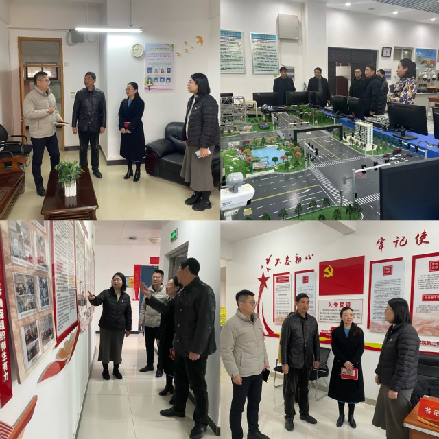 会后,杨婷婷书记、徐义晗院长一行分别参观了样板支部工作室、“一站式”学生社区及学院特色实训室。