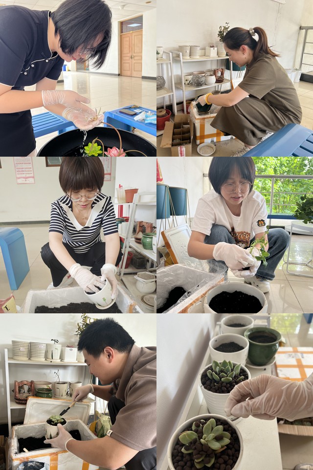 活动中,党员们先后来到宏博楼二楼谈心区花架栽花种草,大家配合默契,干劲十足,现场氛围十分和谐。