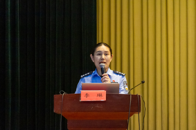 最后,南京市江宁高新区派出所副所长李琳警官结合高校安全工作典型案例,为全体新生上了一堂生动的安全教育课。