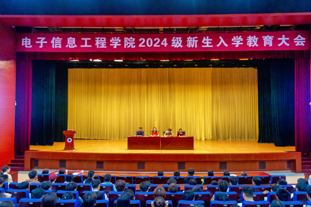9月27日上午,电子信息工程学院2024级新生入学教育大会在图书馆一楼报告厅举行。电子信息工程学院党政领导、班主任、辅导员、全体2024级新生参加了会议。会议由党总支副书记吴蓉蓉主持。