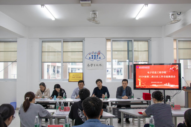 10月16日下午,电子信息工程学院在J栋一站式学生社区召开2024级第二班主任工作交流推进会,学校纪委书记张徐刚、电信学院党政领导、二级关工委常务副主任赵家华、2024级全体班主任、第二班主任及各班班长参加了会议。会议由党总支副书记吴蓉蓉主持。