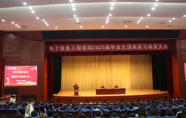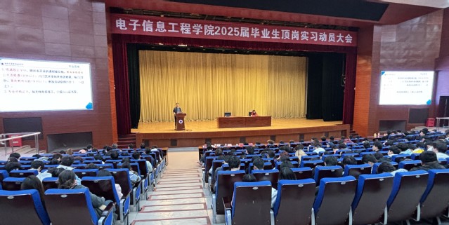 为进一步加强顶岗实习期间的教学和学生管理工作,11月6日下午,电子信息工程学院于图书馆报告厅召开了2025届毕业生顶岗实习动员大会。校保卫处副处长周家明、电子信息工程学院相关老师、关工委赵家华主任、图书馆老师、2022级辅导员及全体学生参加了大会,会议由学院党总支副书记吴蓉蓉主持。