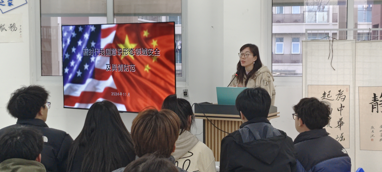 在思想安全方面,电信学院邀请了校党委宣传部袁茜部长,召开了主题为“新时代我国意识形态领域安全及舆情防范”的公开课。课上,袁部长深入浅出,妙语连珠,以生动的例子深度分析了我国意识形态领域安全的主要威胁以及舆情防范的实践经验和教训,为大学生如何做好意识形态安全的践行者指明了方向。