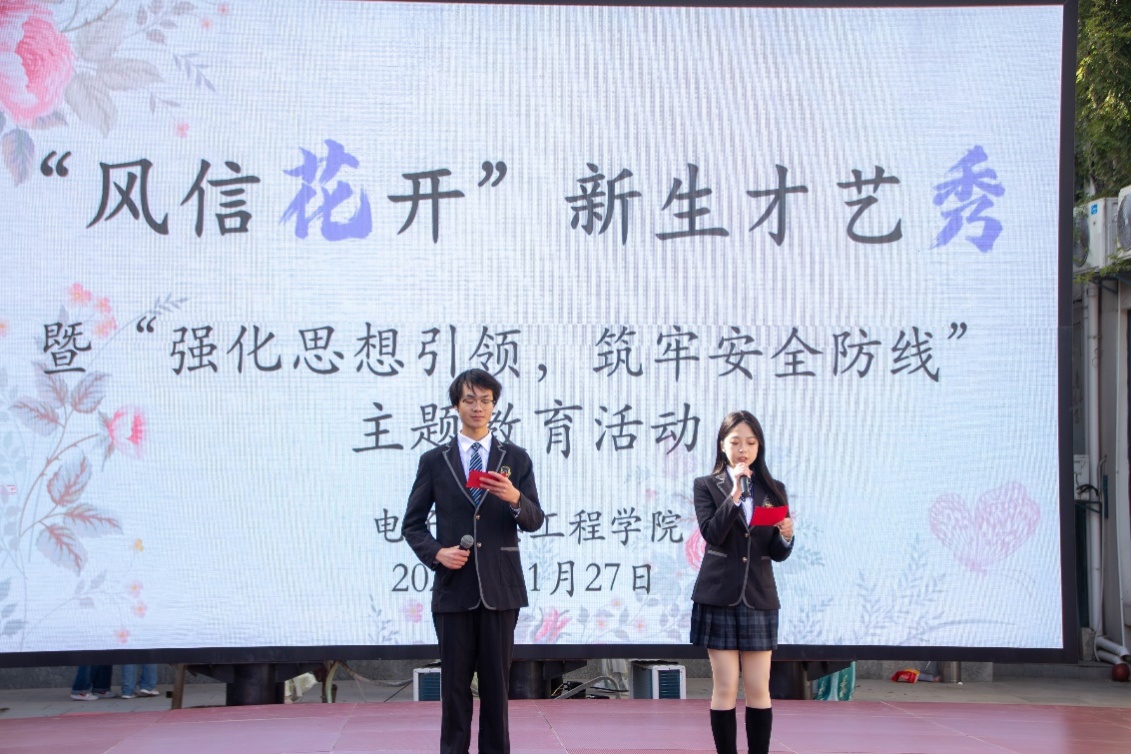 为丰富安全教育的形式,电信学院于思源堂东广场成功举办“风信花开”新生才艺秀暨“强化思想引领,筑牢安全防线”主题教育活动。才艺秀以风趣幽默、生动活泼的节目强调了校园安全的重点事项,将“安全无小事”观念深入人心。