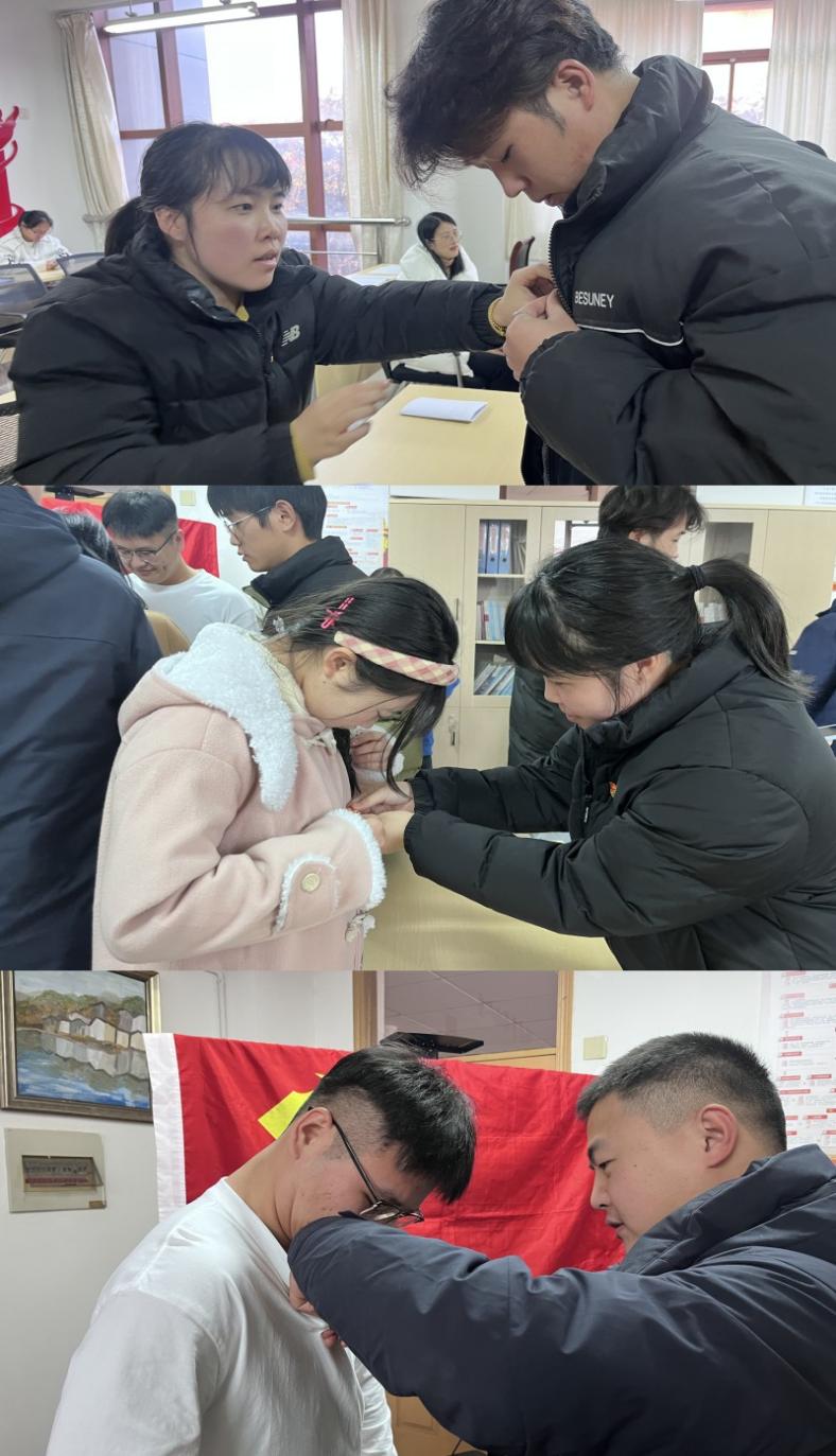 最后,党员老师为10名预备党员佩戴党徽。希望同学们在今后的学习和工作中牢记初心,并以一名党员的标准严格要求自己,为党的事业奋斗终身。