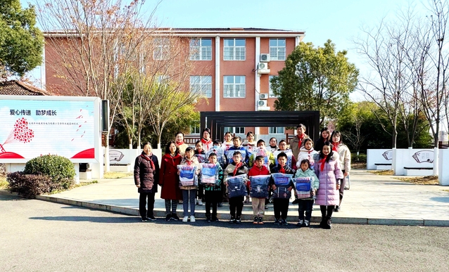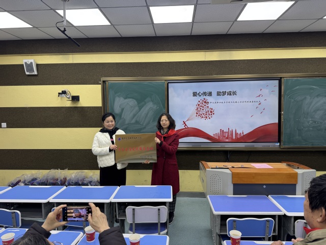 在热烈的掌声中,张毓秋副处长与孔镇小学校长丁小花共同为基地授牌;杨金刚书记与丁小花校长签署了共建协议;电信学院关工委常务副主任赵家华代表学院将书包等文具用品捐赠给小学生。