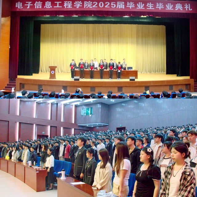 4月21日上午9点,电子信息工程学院2025届毕业生毕业典礼在图书馆报告厅举行。学校纪委书记张徐刚、教务处处长吴兆明、学生工作处处长王红星、电子信息工程学院党政领导、毕业班班主任、辅导员及2025届全体毕业生参加了毕业典礼,毕业典礼由电子信息工程学院院长高水娟主持。