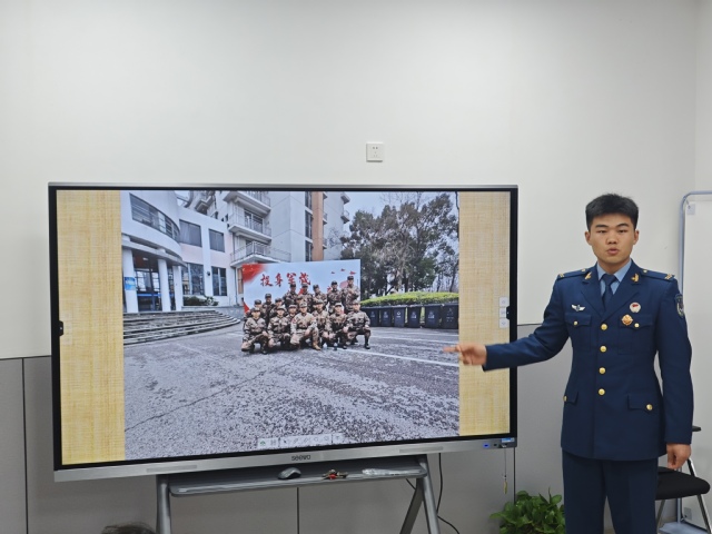 刘坤陇是一名大学生退役士兵,目前就读于我院通信2302班,2025年初有幸成为江宁区2025年春季预定新兵役前教育学生教官中的一员,作为一名学生教官,他与江宁区的适龄青年们有更多的共同语言,也更懂得他们的所思所想,在经验分享会中他与电信青年讲述了他在此次新兵役前教育中与新兵的点点滴滴,他从一日生活制度,部队条例,战备体能训练,政治思想教育,个人态度转变五个方面,系统解析了新兵役前教育中的生活状态,为大家揭开了新兵役前教育的“神秘面纱”。