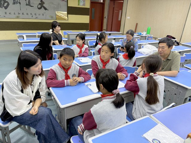 心灵对话:童语交流共话成长。在“童心”交流环节,学院老师们与孩子们围坐一圈,畅谈梦想、分享成长中的烦恼。从未来职业的想象,到生活中的小困惑,一问一答间搭建起温暖的心灵桥梁。短短一节课,成为孩子们感受理解与关怀的美好时光。