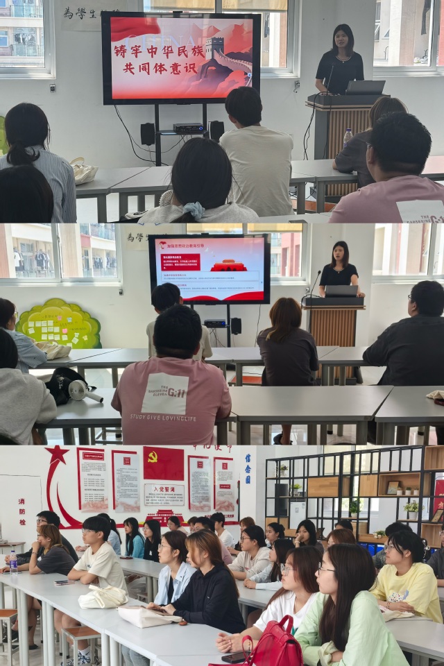 吴颖老师围绕“铸牢中华民族共同体意识”的核心要义,从历史脉络、理论内涵、实践路径等多个维度展开阐述。她结合生动案例,深入浅出地分析了新时代民族工作的形势与任务,强调青年大学生要树立正确的历史观、民族观、国家观,在学习和生活中尊重差异、包容多样,共同营造和谐共进的校园文化氛围。
