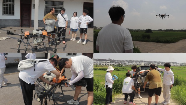 盛夏时节,农作物的病虫害防治工作进入了紧要阶段。为让青年学子近距离触摸智慧农业的前沿脉搏,亲身感受新农人扎根田野的创业实干精神,“翼展青畴,航耘句土,共拓农桑富路” 实践团特地拜访了句容市优秀新农人代表夏洪宇。在他的悉心指导下,实践团成员深入天王镇唐陵村田间地头,顺利完成了一次专业的无人机植保飞防作业,为当地农耕生产注入科技活力,也为自己上了一堂生动鲜活的 “科技兴农” 实践课。