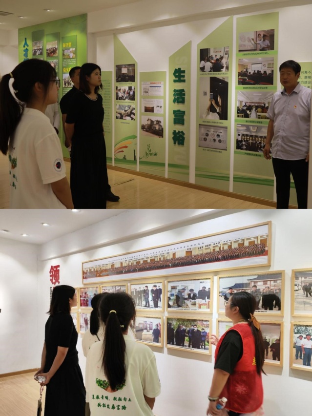 在刘树安书记工作室,实践团聆听了这位唐陵村“领头雁”带领村民脱贫致富、建设美丽乡村的奋斗历程。工作室里的一张张图片、一段段视频,如鲜活的历史画卷,生动展现唐陵村从“薄弱村”到“全国文明村”的蜕变,让师生深刻体会到基层党支部的战斗堡垒作用与党员干部的先锋模范精神。
