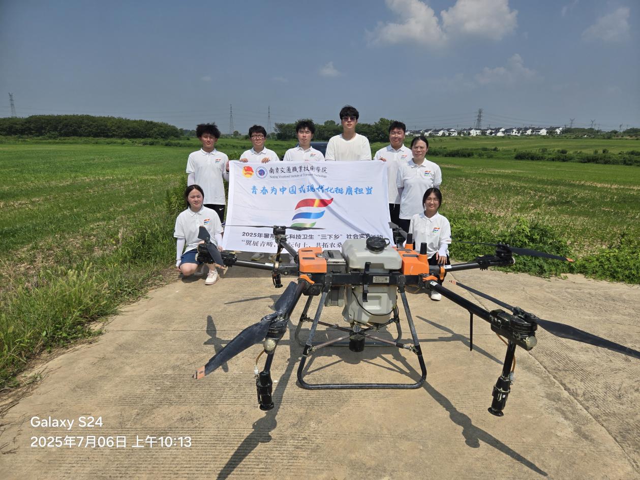 盛夏时节,农作物的病虫害防治工作进入了紧要阶段。为让青年学子近距离触摸智慧农业的前沿脉搏,亲身感受新农人扎根田野的创业实干精神,“翼展青畴,航耘句土,共拓农桑富路” 实践团特地拜访了句容市优秀新农人代表夏洪宇。在他的悉心指导下,实践团成员深入天王镇唐陵村田间地头,顺利完成了一次专业的无人机植保飞防作业,为当地农耕生产注入科技活力,也为自己上了一堂生动鲜活的 “科技兴农” 实践课。
