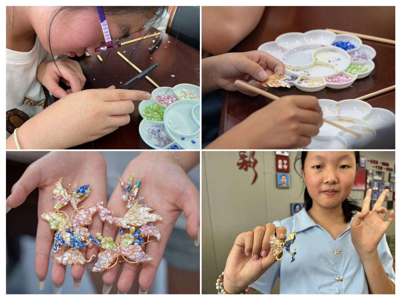 实践环节设置了漆扇制作、螺钿胸针设计等互动项目。孩子们在志愿者指导下,体验了漆液调配、图案晕染等工艺步骤。看着自己亲手制作的漆艺作品在灯光下闪闪发光,小朋友们兴奋不已。家长们纷纷表示:“这样的活动既有趣味性又有教育意义,孩子玩得开心的同时还学到了传统文化知识。”此次活动不仅让孩子们在亲身体验中走近非遗、热爱非遗,更实现了“非遗从扬州走入社区”的教育闭环,真正把优秀传统文化带给基层儿童,助力非遗文化“进课堂、润童心、育新人”。