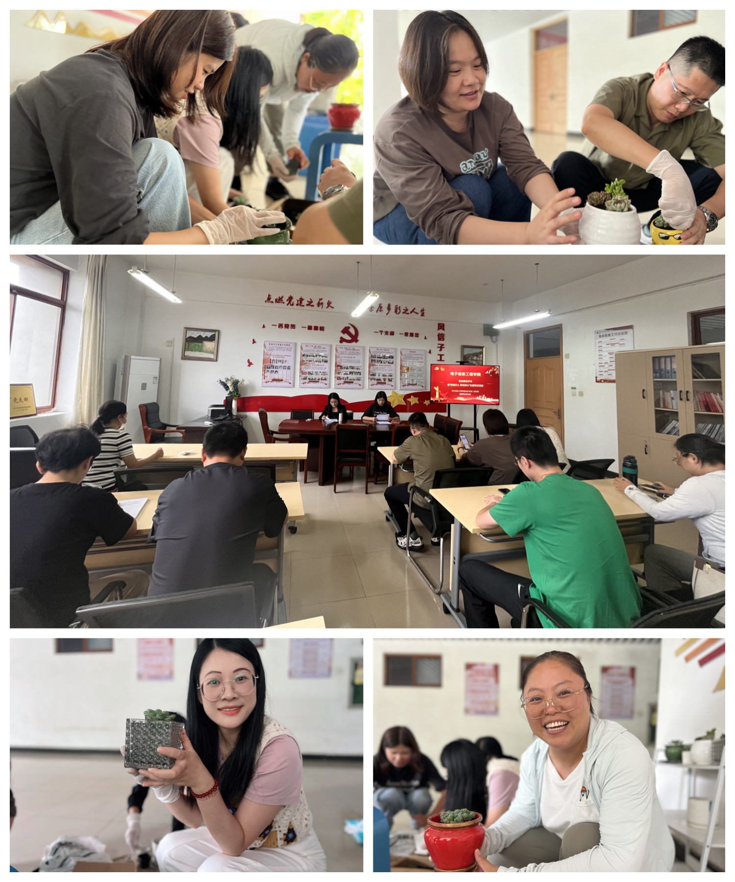 为深化学习效果,党员们来到宏博楼2楼平台,开展了生态环保实践活动。大家分组协作,将一棵棵象征希望的绿植种入盆中,以实际行动为绿化家园、改善生态环境贡献力量。