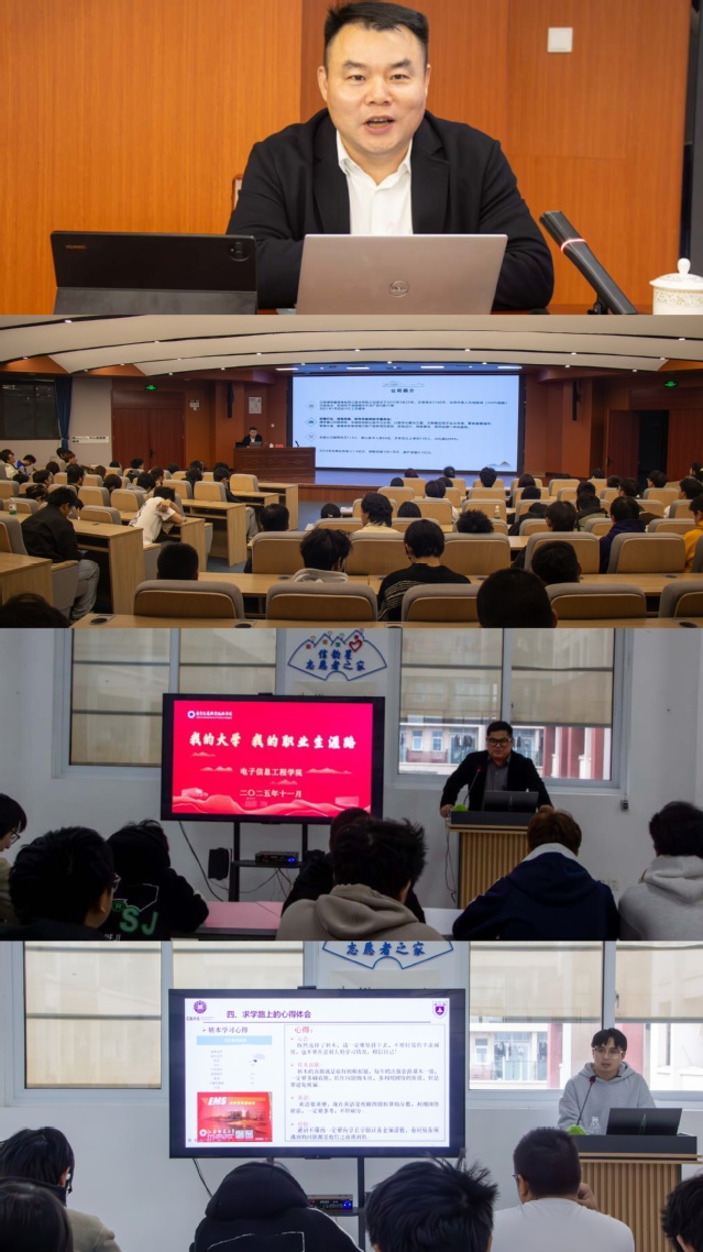 座谈会后, 2002级校友刘新成、2007级校友薛松、2017级校友黄文健面向学院200余名学生开展了“我的大学·我的职业生涯路”校友访谈报告。他们分享了在校期间的学习经验和创业历程中的挑战与突破。